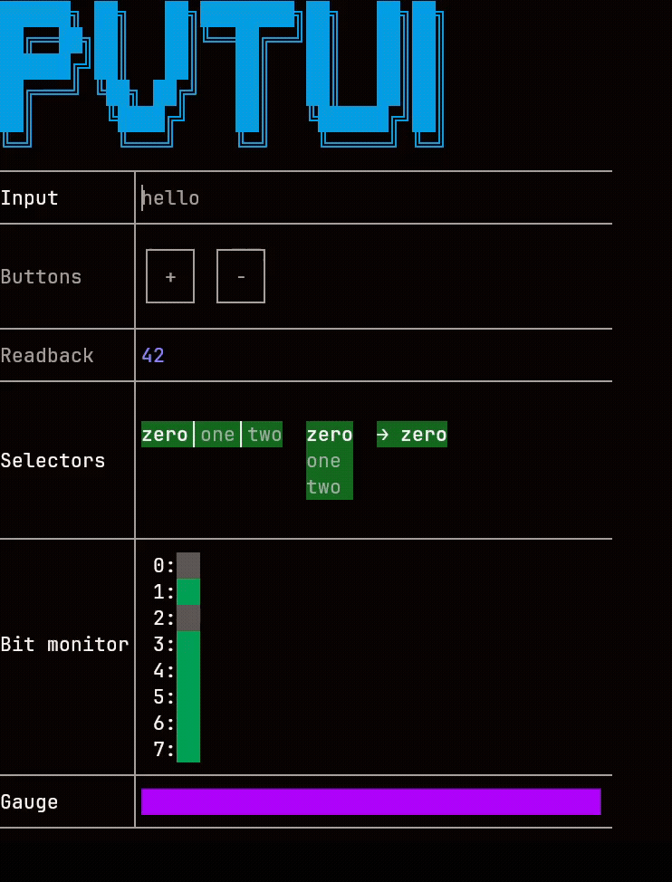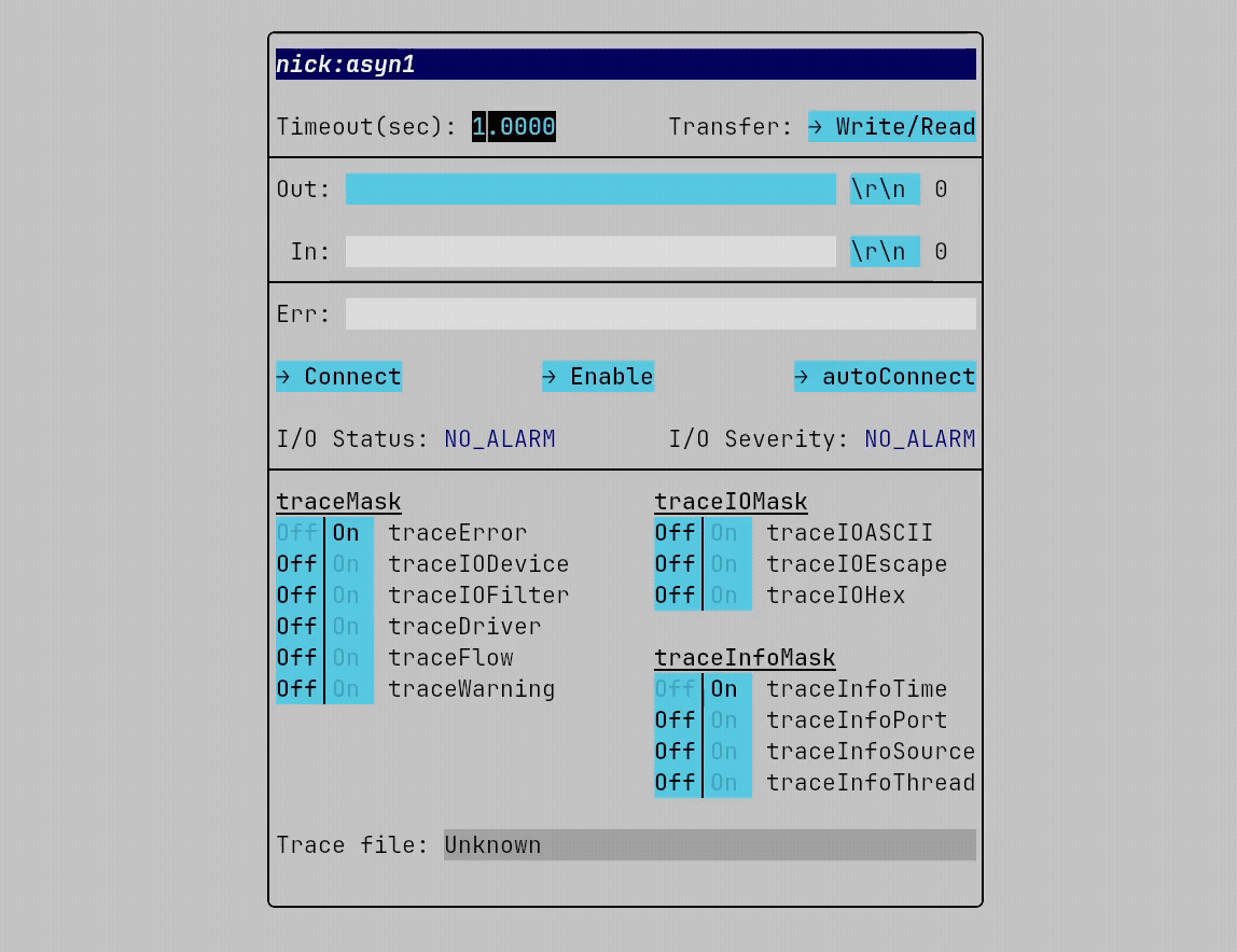 Packaged with the library is a collection of ready to use TUIs which are shown below. Most of these UIs are heavily inspired by MEDM screens included in synApps.